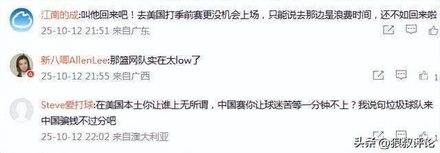不少球迷对于篮网队的安排表达不满,有球迷吐槽说道:“在美国本土你让谁上无所谓,中国赛你让球迷苦等一分钟不上?我说句垃圾球队来中国骗钱不过分吧”。